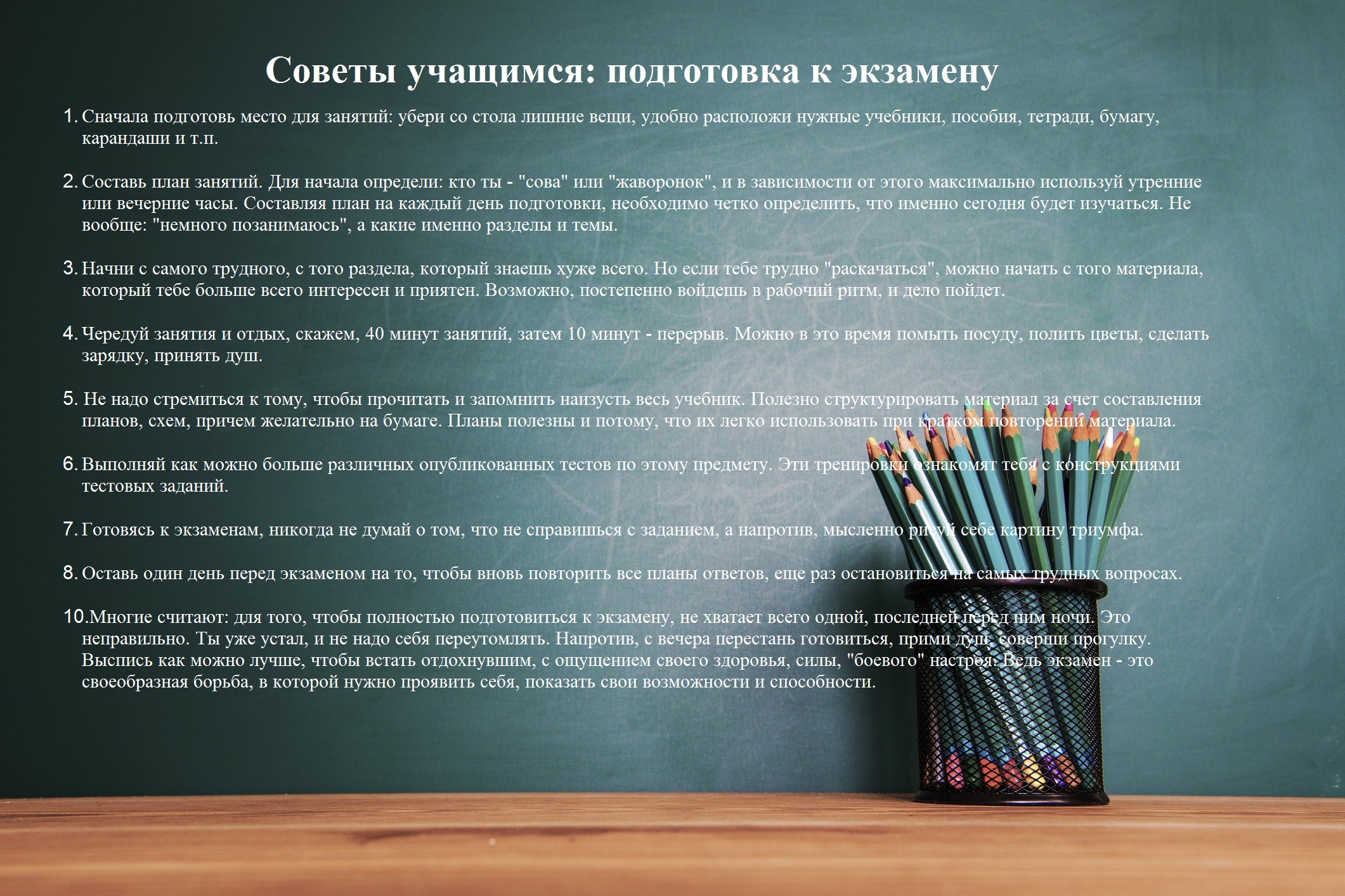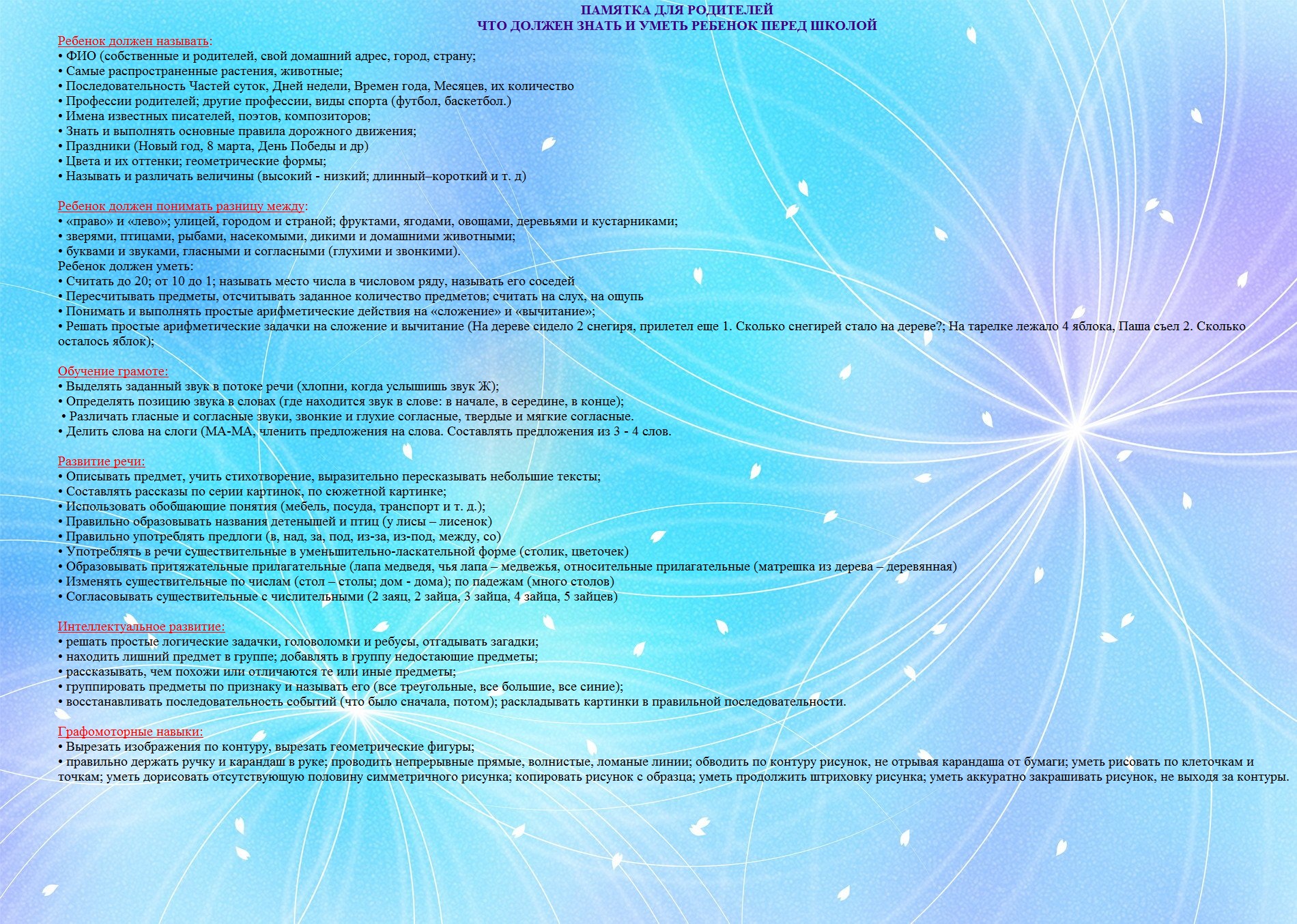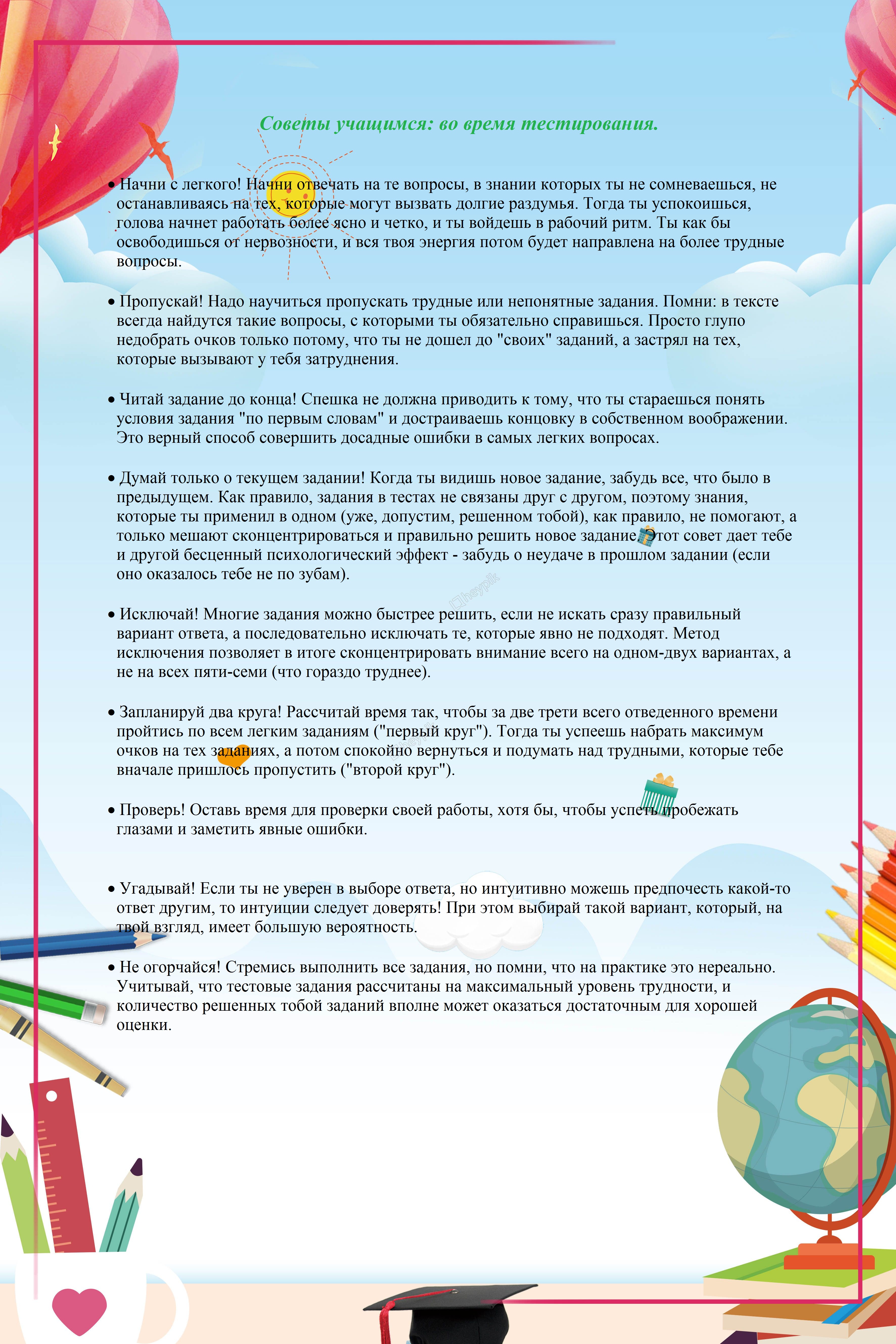 Детский телефон доверия 8-800-2000-112 создан для оказания психологической помощи детям, подросткам и их родителям в трудных жизненных ситуациях. Звонок бесплатный и анонимный. Интернет-портал «Я – родитель» посвящен преимущественно вопросам воспитания и сосредоточен на психологических проблемах, с которыми сталкиваются как сами дети, так и их родители или опекуны (попечители). Рекомендации регионального социопсихологического центра: Профилактика эмоционального выгорания преподавателей >>> Презентация для педагогов "Снятие эмоционального напряжения" >>> Что можно сделать? (рекомендации для педагогов) >>> Рекомендации педагогам по работе с детьми с ОВЗ >>> Для классных руководителей >>> Для родителей >>> "Гиперактивность и дефицит внимания" (рекомендации родителям) >>> Рекомендации родителям детей с ОВЗ >>> Рекомендации родителям будущих первоклассников >>> Шесть приемов подготовки к школе >>> Презентация "Профилактика деструктивного поведения в подростковом возрасте" >>> Презентация "Техники по снятию стресса для подростков" >>> Памятка для родителей "Что должен знать и уметь ребенок перед школой" >>> Рекомендации родителям "Как помочь детям подготовиться к экзаменам" >>> Советы учащимся перед экзаменами >>> Советы учащимся во время тестирования >>> Советы родителям при подготовке к ВПР >>>